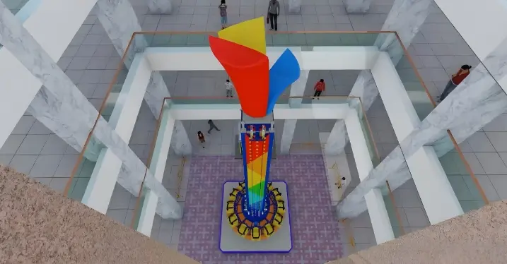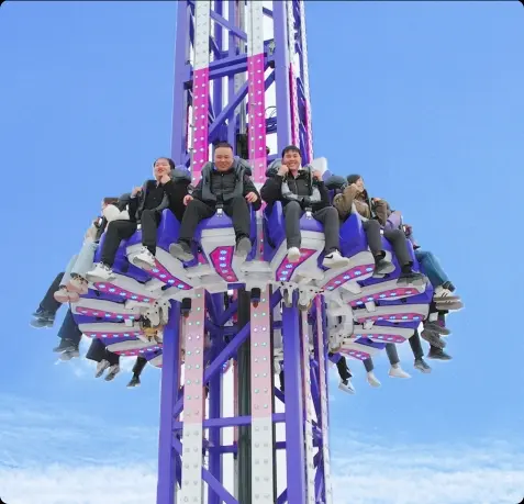Beston Rides 35 м Аттракцион Свободное Падение «Лифт 0‑G» выполнена в стиле парящего инопланетного НЛО и успешно прошла полный комплекс испытаний безопасности.